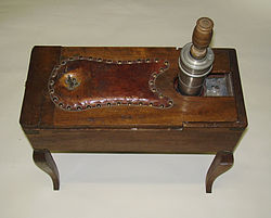 | Abbildung: Transportabler Selbstklistier-Apparat nach Giovanni Alessandro Brambilla aus dem 18. Jahrhundert. Man setzt sich mit dem After auf das Röhrchen und spritzt sich den Inhalt der Zinnspritze ein. Medizinhistorisches Museum der Universität Zürich. | Die Autorenschaft wurde nicht in einer maschinell lesbaren Form angegeben. Es wird angenommen, dass es sich um ein eigenes Werk handelt (basierend auf den Rechteinhaber-Angaben). | Die Autorenschaft wurde nicht in einer maschinell lesbaren Form angegeben. Es wird Pius~commonswiki als Autor angenommen (basierend auf den Rechteinhaber-Angaben). | Datei:Klistierbank1.JPG |