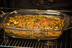 | Schmoren eines Rostbratens à la Girardi im Backofen | Eigenes Werk | Alupus | Datei:Rostbraten Giradi während des Schmorens.jpg |