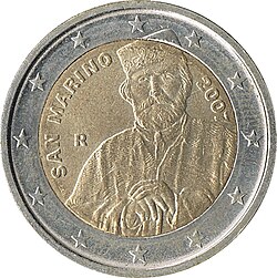 - 2007 erschien in San Marino zum 200. Geburtstag Garibaldis eine 2-Euro-Gedenkmünze mit seinem Porträt als Motiv. Die Münze wurde in einer Miniauflage von 130.000 Stück ausgegeben. Aufgrund der großen Bekanntheit Garibaldis in Italien wurde auf einen Namenszug auf der Münze verzichtet.
