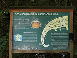| Schild des Geo Schauweges der Glasenbachklamm | Eigenes Werk | Viva La Ren | Datei:Glasenbachklamm Geo Schauweg Schild.jpg | |