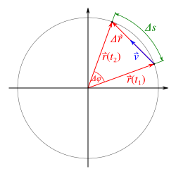 | Kreisbewegung und Geschwindigkeitsvektor | Eigenes Werk | Stündle | Datei:Kreisbewegung und geschwindigkeitsvektor.svg |