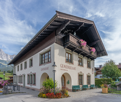 Ansicht der österreichischen Gemeinde Going am Wilden Kaiser. Die Gemeinde ist vor allem für seine touristischen Attraktionen und seine besondere Umgebung (Wilder Kaiser) bekannt. Hier sieht man das Gemeindeamt von Going. | Eigenes Werk | PantheraLeo1359531 | Datei:Going am Wilden Kaiser 20220905 HOF04175 RAW-Export.png | |