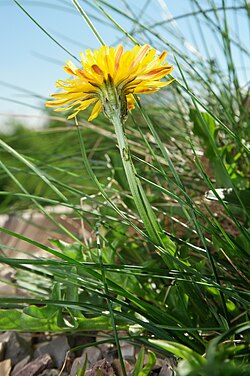 Die verkehrt-lanzettlich-spatelförmigen,[2] grob gezähnten bis schrotsägeförmig-fiederlappigen und kahlen Grundblätter sind in einer grundständigen Rosette angeordnet. Am Stängel sind meist keine oder höchstens zwei, schuppenförmige, linealische bis pfriemliche Hochblätter vorhanden.
