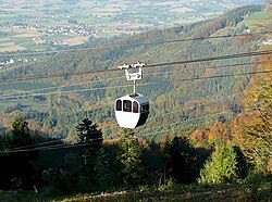 | Blick von der Grünberg-Seilbahntrasse auf des Zentrum der oberösterreichischen Stadt Gmunden . Die ursprüngliche Seilbahn wurde 1957 errichtet und war bis 2010 in Betrieb. Die neue, eine Pendelbahn , wurde 14. Juni 2014 eröffnet und hat eine Kapazität von bis zu rund 600 Personen/Stunde. | Eigenes Werk | C.Stadler/Bwag | Datei:Gmunden - Grünbergbahn.JPG | |