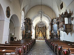 1776 erhielt die Kirche einen spätbarocken Turm. Es gab mehrere Hochaltarblätter, so eines von Anton Jandl (1797) und 1865 eines von Josef Tunner. Das jetzige Altarbild stammt von Ludwig Ritter Kurz zu Thun und Goldenstein.
