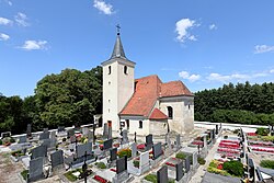 | Südostansicht der röm.-kath. Pfarrkirche hl. Ägyd in Grafensulz , ein Ortsteil der niederösterreichischen Marktgemeinde Ladendorf . Die vom Friedhof umgebene und in erhöhter Lage südöstlich des Ortes errichtete Kirche ist eine spätromanische Saalkirche mit eingezogenem Chorquadrat, die zur Barockzeit verändert wurde. Südseitig des Chores ist die Apsis des ehemaligen romanischen Karners aus dem 12. Jahrhundert angebaut, die später durch einen Sakristeizubau mit der östlichen Turmwand verbunden wurde. | Eigenes Werk | C.Stadler/Bwag | Datei:Grafensulz - Kirche (2).JPG | |