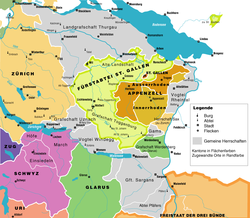 | Die politischen Verhältnisse der Ostschweiz während der Alten Eidgenossenschaft (vor 1798) | Eigenes Werk | Marco Zanoli ( sidonius 12:39, 23 December 2006 (UTC)) | Datei:Ostschweiz1798.png | |