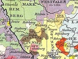 - im Norden der Exklave Bendorf, die Grafschaft Isenburg