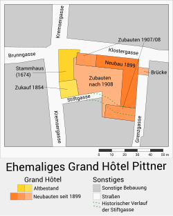 | Lagekarte des ehemaligen Grand Hotel Pittner | Eigenes Werk | AleXXw | Datei:Grand Hotel Pittner.svg | |