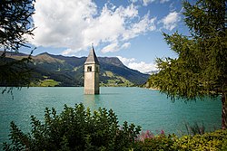 | Diese Datei zeigt das Baudenkmal mit der Nummer 14990 in Südtirol. | Lago di Resia (Reschensee) | Sander van der Wel from Netherlands | Datei:Lago di Resia (Reschensee) (14990159251).jpg |