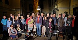 | von links nach rechts: Georg Bydlinsky, Catrin M. Hassa, Mieze Medusa (hinten), Heinz Kröpfl, .aufzeichnensysteme (vorne), Patricia Brooks, Andreas Pavlic (hinten), Margarita Fuchs, Ilse Kilic (vorne), Kurt Mitterndorfer, Walter Baco, Elmar Mayer-Baldasseroni, Wolfgang Kauer, Mechthild Podzeit-Lütjen (hinten), Lisa Fritsch, Marie-Thérèse Kerschbaumer (vorne), Susanne Toth (hinten), Ferdninand Schmatz, Julian Schutting, Gerhard Jaschke, Karin Spielhofer, Astrid Nischkauer | Eigenes Werk | Stahlprinzessin | Datei:Nach der Lyrik im Mai 2022.jpg | |