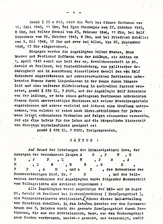 Seite 4, Anrechnungen, Freisprüche, Beginn der Begründung