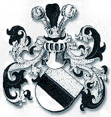 1575: Schräggestellter Schild von Gold, Schwarz und Silber geteilt. Auf dem goldgekrönten offenen Helm mit schwarz-goldenen Decken drei (golden, schwarz, silbern) Straußenfedern. die Helmdecke ist rechts schwarz-silber und links schwarz-gold.