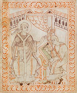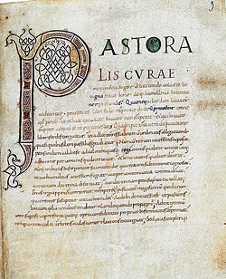 | Papst Gregor der Große, Regula Pastoralis, Reims Bibliothèque municipale, Sign. Ms 421, fol. 3r. | Scan aus Rudolf Schieffer: Bischöfliche und monastische Caritas im Mittelalter. In: Christoph Stiegemann (Hrsg.): Caritas - Nächstenliebe von den frühen Christen bis zur Gegenwart. Petersberg 2015, S. 138–145, hier: S. 139 | Papst Gregor der Große | Datei:Papst Gregor der Große, Regula pastoralis.jpg |