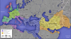 | The Byzantine empire at the advent of Justinian I to the throne (527 CE) and at his death (565 CE). Source: Georges Duby, Atlas historique Duby, 2002 (?) | Die Autorenschaft wurde nicht in einer maschinell lesbaren Form angegeben. Es wird angenommen, dass es sich um ein eigenes Werk handelt (basierend auf den Rechteinhaber-Angaben). | Die Autorenschaft wurde nicht in einer maschinell lesbaren Form angegeben. Es wird Neuceu als Autor angenommen (basierend auf den Rechteinhaber-Angaben). | Datei:Justinien 527-565.svg | |