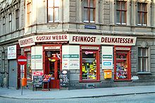 | Greißler in Wien Hernals. Ein "Greißler" ist die österreichische Variante eines "Tante-Emma-Ladens". | Eigenes Werk , scan from film | Herbert Ortner | Datei:Feinkost Weber Hernals 1994.jpg | |