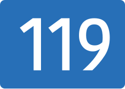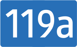 | Sign of Bundesstrasse 119 in Austria | Straßenverkehrszeichenverordnung (StVZVO), BGBl. 1998 II 1205-1227, 1217. | Rl91 | Datei:B119-AT.svg | |