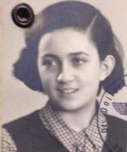 | Passbild von Grete Zimmer 1939, verh. Greta Zimmer Friedman . | Eigenes Werk | Joshuamichaelfriedman | Datei:Grete Zimmer 1939 Passport photograph (cropped).jpg | |