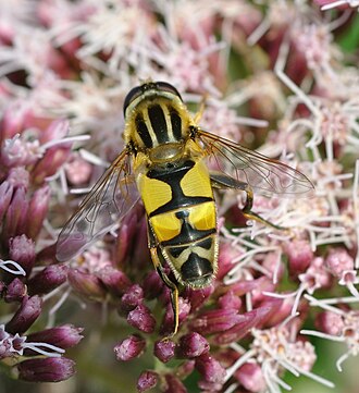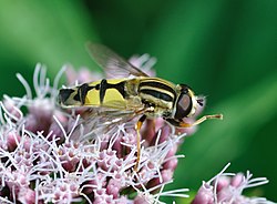 | Helophilus trivittatus , Nahrungsaufnahme auf Eupatorium cannabinum | Eigenes Werk | Siga | Datei:Helophilus trivittatus.ogv | |