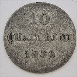 | 10 Quattrini von 1853, Toskana, Wertseite | Eigenes Werk | HJunghans | Datei:10 Quattrini Toskana Rv.JPG | |