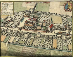 | Alte Abbildung des Schlosses und Marktfleckens Michelau (heute Michałów), im Kreis Brieg (heute Brzeg im Powiat Brzeski der polnischen Woiwodschaft Opole), seit 16. Jahrhundert Besitz der Gruttschreiber von Zopekendorf | Alte Grafik, originalkoloriert | Autor/-in unbekannt Unknown author | Datei:Michelau Michelow Schloss und Marktflecken.png |