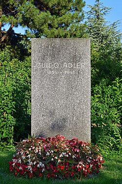 | Ehrengrab von Guido Adler auf dem Wiener Zentralfriedhof . Dieses Bild zeigt das in Österreich unter der Nummer 128657 denkmalgeschützte Objekt. ( Commons , de , Wikidata ) | Eigenes Werk | Haeferl | Datei:Wiener Zentralfriedhof - Gruppe 32 C - Guido Adler.jpg | |