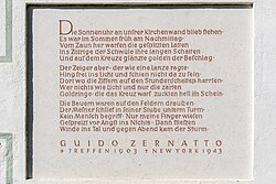 Gedicht von Guido Zernatto an der Kirchenwand der röm.-kath. Pfarrkirche hl. Maximilian in Treffen, Marktgemeinde Treffen , Bezirk Villach Land, Kärnten , Österreich , EU | Eigenes Werk | Johann Jaritz | Datei:Treffen Pfarrkirche hl. Maximilian Kirchenwand Gedicht von Guido Zernatto 11102023 4590.jpg | |
