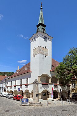 - Das Rathaus wurde als Renaissance-Bau als Gerichtshaus Schranne von Marktrichter Mang Kharner und Maurermeister Anton Preiner im Jahr 1559 erbaut. Markant sind die Arkaden sowie der Turm mit Uhr. Das Rathaus ist charakteristisch für das aufstrebende Bürgertum gegenüber der Kirche. Die Besichtigung der Pfeilerhalle im ersten Stock ist während der Amtsstunden möglich. Im Rathaus gibt es auch noch alte Kerker-Zellen, die jedoch nicht zu besichtigen sind, und heute als Lagerraum genutzt werden.