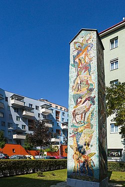 | Umbau des Südtiroler Platzes (1959), Mosaik, Gußriegelstraße 51-59, Wien-Favoriten | Eigenes Werk | Buchhändler | Datei:Gußriegelstraße 08.JPG | |