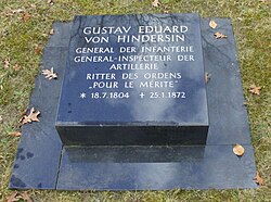 | Grabstein für Gustav Eduard von Hindersin auf dem Invalidenfriedhof Berlin | Selbst fotografiert | Norbert Radtke, Dramburg | Datei:Gustav Eduard von Hindersin.jpg |