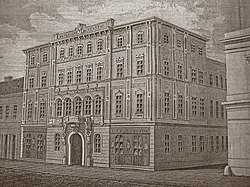 | Redaktions- und Verlagsbüro sowie Druckerei der Illustrierten "Vasárnapi Ujság" | "Vasárnapi Ujság", 4 January 1863; via http://www.oeaw.ac.at/oebl/Bio_d_M/bio_2011_09.htm | Autor/-in unbekannt Unknown author | Datei:Heckenast Verlag außen.jpg |