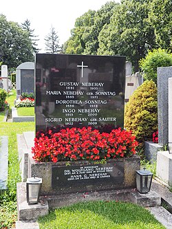 | Grab des österreichischen Kunsthändlers de:Gustav Nebehay am Friedhof Hietzing, 1130 Wien (Gruppe 40, Nr. 9E). | Eigenes Werk | Papergirl | Datei:Grave of Gustav Nebehay, Vienna, 2021.jpg | |