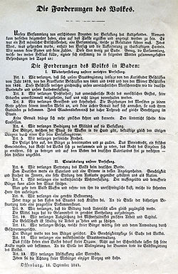 | Demands of the People as result of a revolutionary meeting in Offenburg on 12 September 1847 | Eigenes Werk | Red Baron 2 | Datei:Die Forderungen des Volkes in Baden.jpg | |