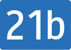 | Sign of Bundesstrasse in Austria | Straßenverkehrszeichenverordnung (StVZVO), BGBl. 1998 II 1205-1227, 1217. | AleXXw | Datei:B21-AT.svg | |
