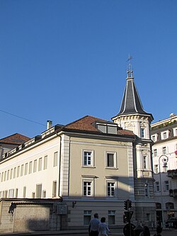 | Diese Datei zeigt das Baudenkmal mit der Nummer 15979 in Südtirol. | Eigenes Werk | ManfredK | Datei:Meran Stadtgymnasium 2.jpg |