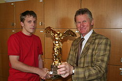 | Prix Ars Electronica 2007, Goldene Nica mit Matthäus Spindelböck und Alfred Gaugg | Selbst fotografiert | Günther Hölzl | Datei:Htl moessingerstrasse goldene nica.jpg | |