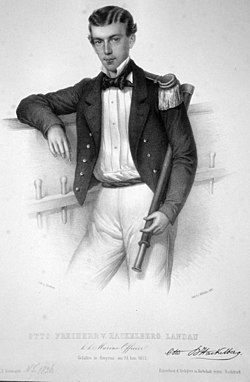 | Otto Freiherr von Hackelberg-Landau (gefallen 1853) Marineoffizier. Lithographie von Adolf Dauthage, 1853 | Foto einer Originallithographie aus der eigenen Sammlung | Adolf Dauthage (1825-1883) | Datei:Otto von Hackelberg-Landau Litho.jpg |