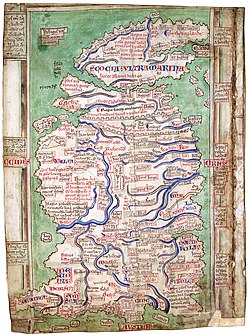 | Britannienkarte des Matthew Paris | Abbreuiatio chronicorum (Epitome of Chronicles), BL Cotton MS Claudius D VI, fol. 12v This scan from the British Library | Matthew Paris (* um 1199; † um 1259). | Datei:Britannienkarte des Matthew Paris.jpg | |