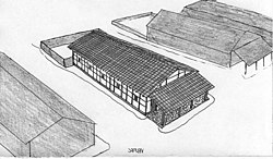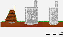 | Bauweise | a) Holz-Grassoden-Konstruktion, b) Steinbauweise |