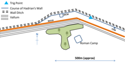 | Carvoran (Magna) Roman Fort - tower at northwest corner (2). With 578245 in the distance. | From geograph.org.uk | Mike Quinn | Datei:Carvoran (Magna) Roman Fort - tower at northwest corner (2) - geograph.org.uk - 1374211.jpg | |
