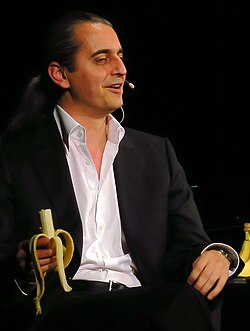 | Hagen Rether, deutscher Kabaretist und Pianospieler im April 2016 mit seinem Programm "Liebe" in der Schlossberghalle in Starnberg, Oberbayern | Eigenes Werk | Richard Huber | Datei:Hagen Rether mit Banane.jpg | |