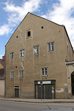 | Der ehemalige Freihof der Familie Hager ist ein giebelständiger Bau mit drei Geschoßen. Er stammt im Kern aus dem 16. Jahrhundert. | Eigenes Werk | Duke of W4 | Datei:Hauptstraße 21 Allentsteig.jpg |