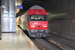 | Ein Regionalzug wartet in der Haltestelle Wien Rennweg auf die Weiterfahrt Richtung Floridsdorf. Der Steuerwagen ist voraus, eine ÖBB 1116 schiebt den Zug. | Eigenes Werk | ÖBB399 | Datei:Regionalzug in Wien Rennweg.JPG | |
