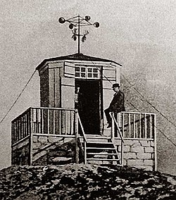 | Meteorologische Stationen "Hannwarte" auf dem Hochobir in Kärnten | Repro Dreinagel | Unbekannter Fotograf | Datei:Hannwarte alt.jpg |