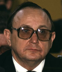 Hans-Dietrich Genscher (* 21. März 1927 in Reideburg, Saalkreis; † 31. März 2016 in Wachtberg-Pech, Rhein-Sieg-Kreis)[1][2] war ein deutscher Politiker (FDP). Von 1969 bis 1974 war er Bundesminister des Innern. Von 1974 bis 1992 war er – mit einer Unterbrechung von etwa zweieinhalb Wochen – Bundesminister des Auswärtigen sowie Vizekanzler der Bundesrepublik Deutschland: von 1974 bis 1982 unter der Kanzlerschaft von Helmut Schmidt (SPD) und nach dem Regierungswechsel von 1982 bis 1992 unter der Kanzlerschaft Helmut Kohls (CDU). Er ist damit der Bundesminister mit der längsten Amtszeit. Darüber hinaus war er von 1974 bis 1985 Bundesvorsitzender der FDP.