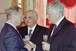 | THE KREMLIN, MOSCOW. President Putin with Hans Friedrich von Pletz (right), Ambassador of the Federal Republic of Germany, after a ceremony for presenting credentials. | http://www.kremlin.ru/eng/text/images/41287.shtml | Presidential Press and Information Office | Datei:Vladimir Putin with Hans Friedrich von Pletz.jpg |