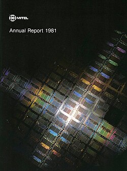 | Hans Blohm's photograph of a microchip appearing on the cover of Mitel's 1981 Annual Report. | received from the author | Hans Blohm | Datei:Mitel Annual report cover by Hans Blohm.jpg |