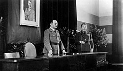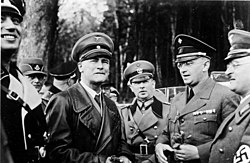 | Es folgt die historische Originalbeschreibung , die das Bundesarchiv aus dokumentarischen Gründen übernommen hat. Diese kann allerdings fehlerhaft, tendenziös, überholt oder politisch extrem sein. Staatsbesuch des Reichs und Preußischen Ministers des Innern Dr. Wilhelm Frick in Sudetenland | Dieses Bild wurde im Rahmen einer Kooperation zwischen dem deutschen Bundesarchiv und Wikimedia Deutschland aus dem deutschen Bundesarchiv für Wikimedia Commons zur Verfügung gestellt. Das deutsche Bundesarchiv gewährleistet eine authentische Bildüberlieferung nur durch die Originale (Negative und/oder Positive), bzw. die Digitalisate der Originale im Rahmen des Digitalen Bildarchivs . | Unbekannt Unknown | Datei:Bundesarchiv Bild 121-0015, Gauleiter Krebs.jpg | |