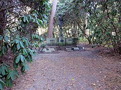 | Familiengrab Buehl/Grau , Friedhof Ohlsdorf , Planquadrat AC 13 (östlich Kapelle 8 nahe Stiller Weg ). Das Grabmal wurde 1938 vom deutschen Bildhauer Hans Plangger geschaffen. | Eigenes Werk | Vitavia | Datei:Grab Buehl-Grau (Plangger) FriedhofOhlsdorf (1).jpg | |