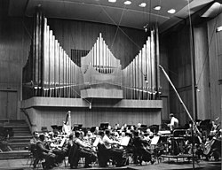 | Es folgt die historische Originalbeschreibung , die das Bundesarchiv aus dokumentarischen Gründen übernommen hat. Diese kann allerdings fehlerhaft, tendenziös, überholt oder politisch extrem sein. Funkhaus Köln: Großer Sendesaal des Rundfunkhauses in Köln. Prof. Hans Rosbaud während einer Probe mit dem Sinfonie-Orchester des Hauses. | Dieses Bild wurde im Rahmen einer Kooperation zwischen dem deutschen Bundesarchiv und Wikimedia Deutschland aus dem deutschen Bundesarchiv für Wikimedia Commons zur Verfügung gestellt. Das deutsche Bundesarchiv gewährleistet eine authentische Bildüberlieferung nur durch die Originale (Negative und/oder Positive), bzw. die Digitalisate der Originale im Rahmen des Digitalen Bildarchivs . | Unterberg, Rolf | Datei:Bundesarchiv B 145 Bild-F001346-0001, Köln, WDR Rundfunkstudio.jpg | |